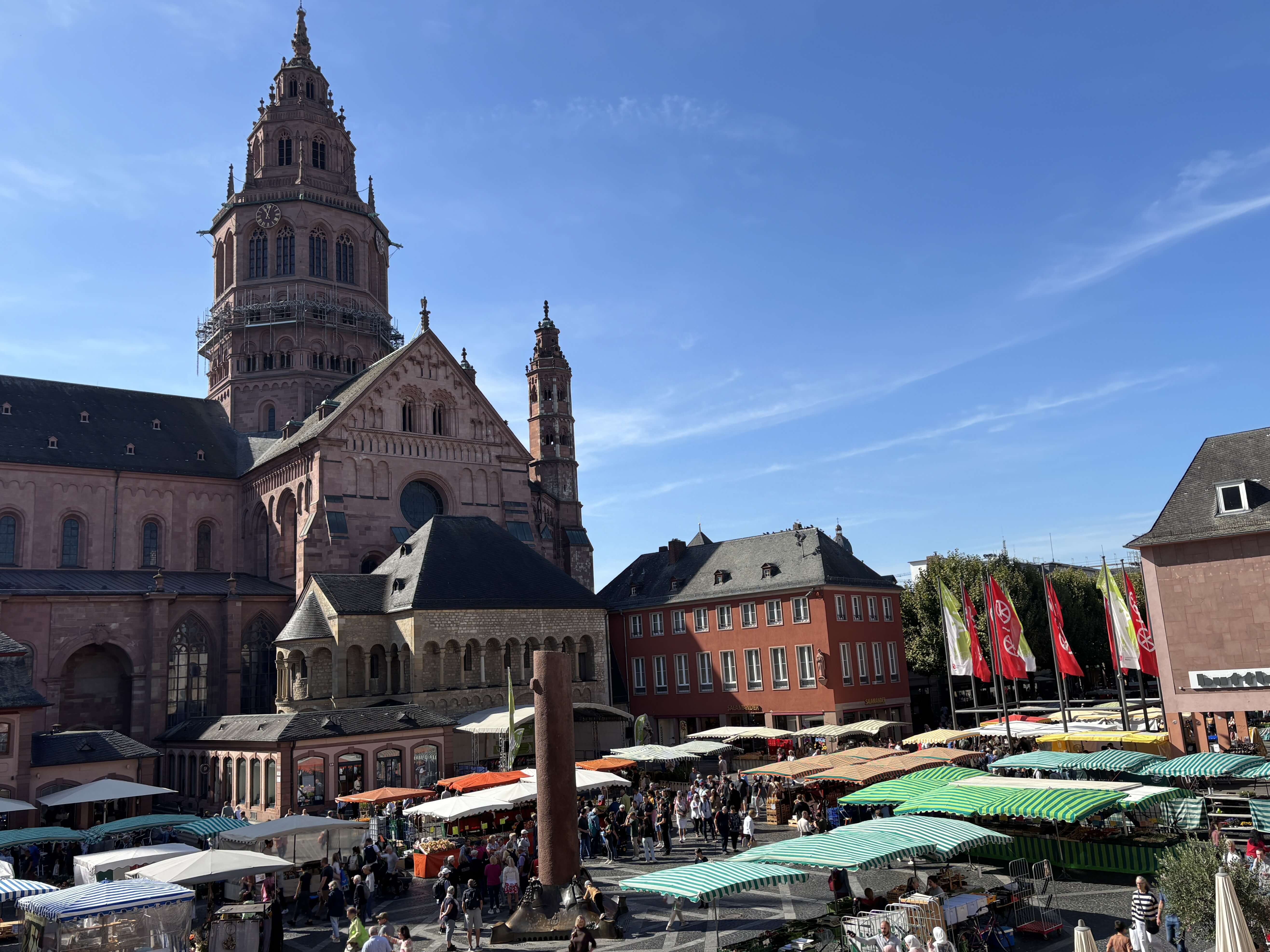 Früher war Mainz im Vergleich zu anderen Städten eine wirklich große Nummer, einer der großen Hotspots weit und breit. Das war allerdings vor mehr als 500 Jahren. Heute ist es eine beschauliche, leicht provinzielle Stadt, vernarbt durch zahlreiche Bausünden nach dem 2. Weltkrieg, aber wunderschön gelegen an der Mündung des Mains in den Rhein.